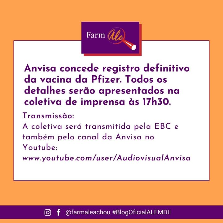 O imunizante do Laboratório Pfizer/Biontech teve sua segurança, qualidade e eficácia, aferidas e atestadas pela equipe técnica de servidores da Anvisa que prossegue no seu trabalho de proteger a saúde do cidadão brasileiro.