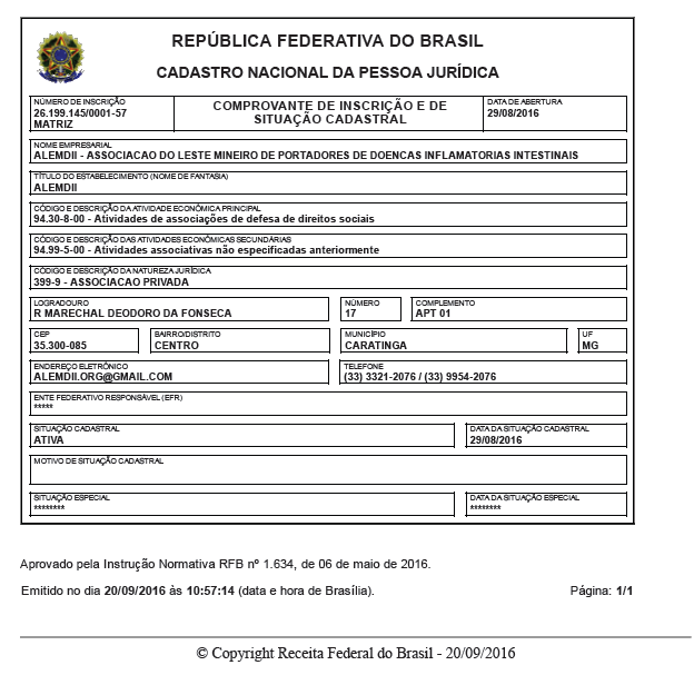 A página de Documentos Legais da Associação do Leste Mineiro de Portadores de Doenças Inflamatórias Intestinais (ALEMDII) reúne os principais documentos que garantem a regularidade e o reconhecimento da nossa entidade. Aqui estão disponíveis para consulta o Estatuto Social, o comprovante de inscrição e situação cadastral, além da Declaração de Utilidade Pública. Esses documentos reforçam o compromisso da ALEMDII com a transparência, a legalidade e a atuação responsável em prol dos portadores de Doenças Inflamatórias Intestinais na região.
